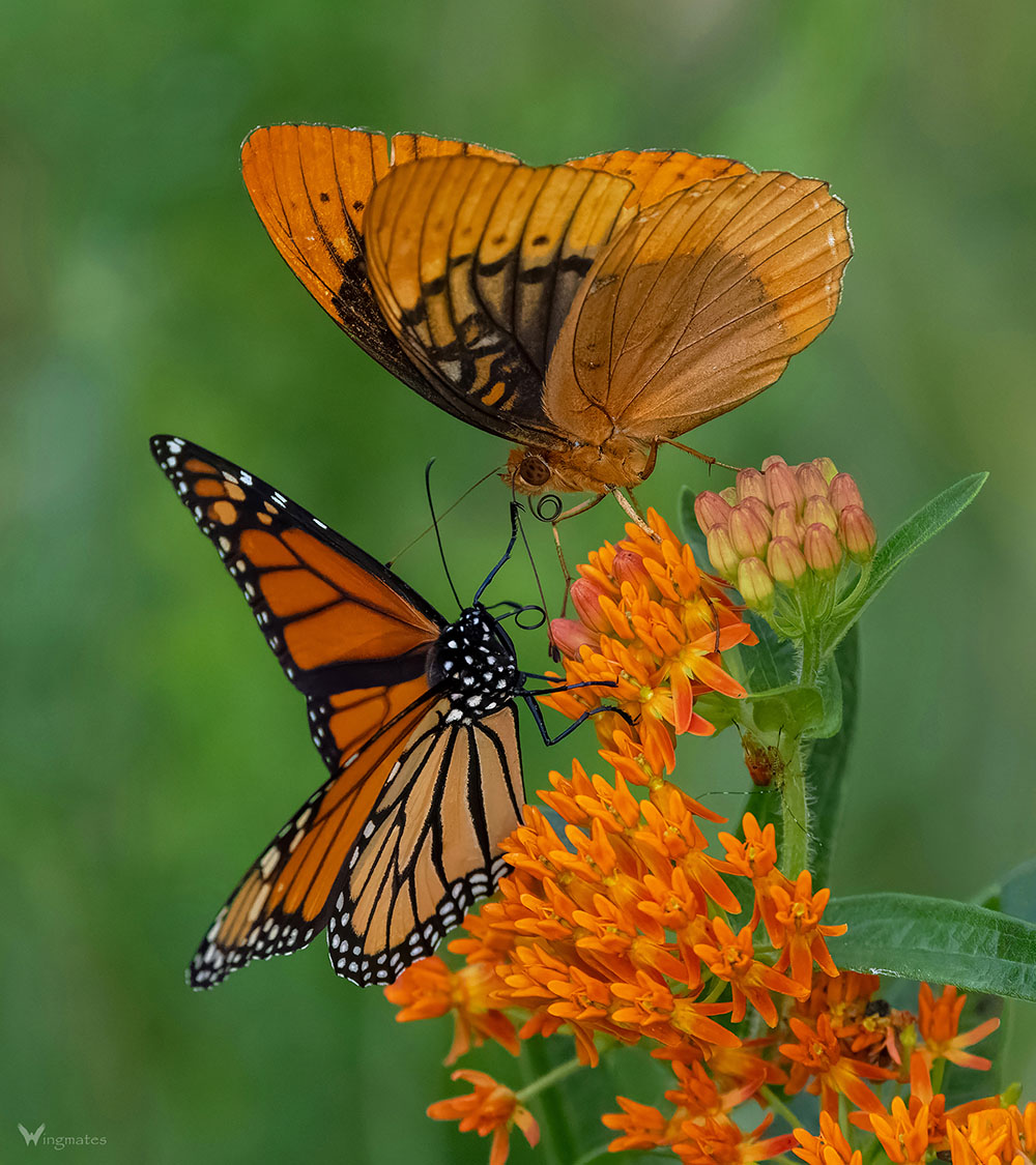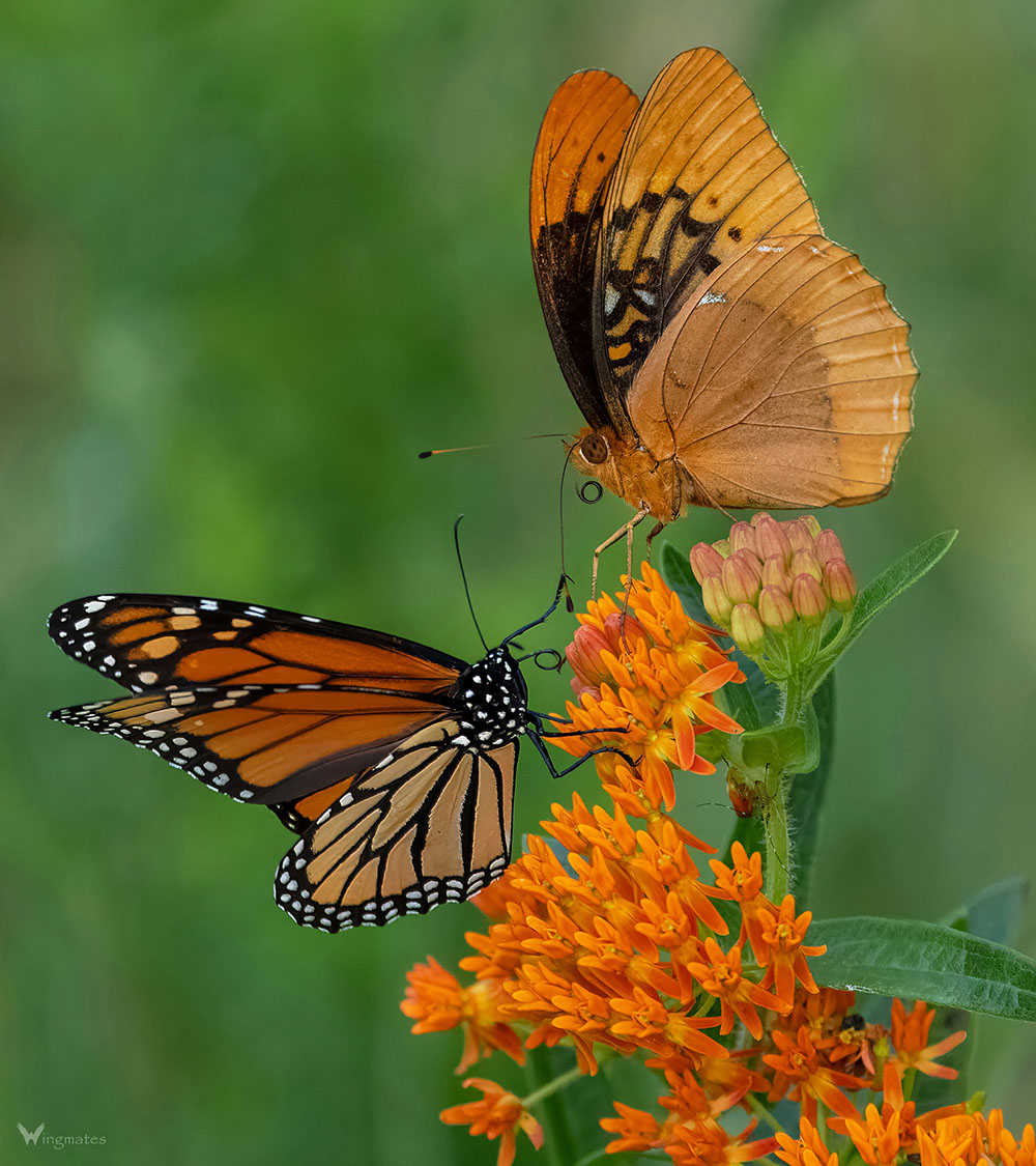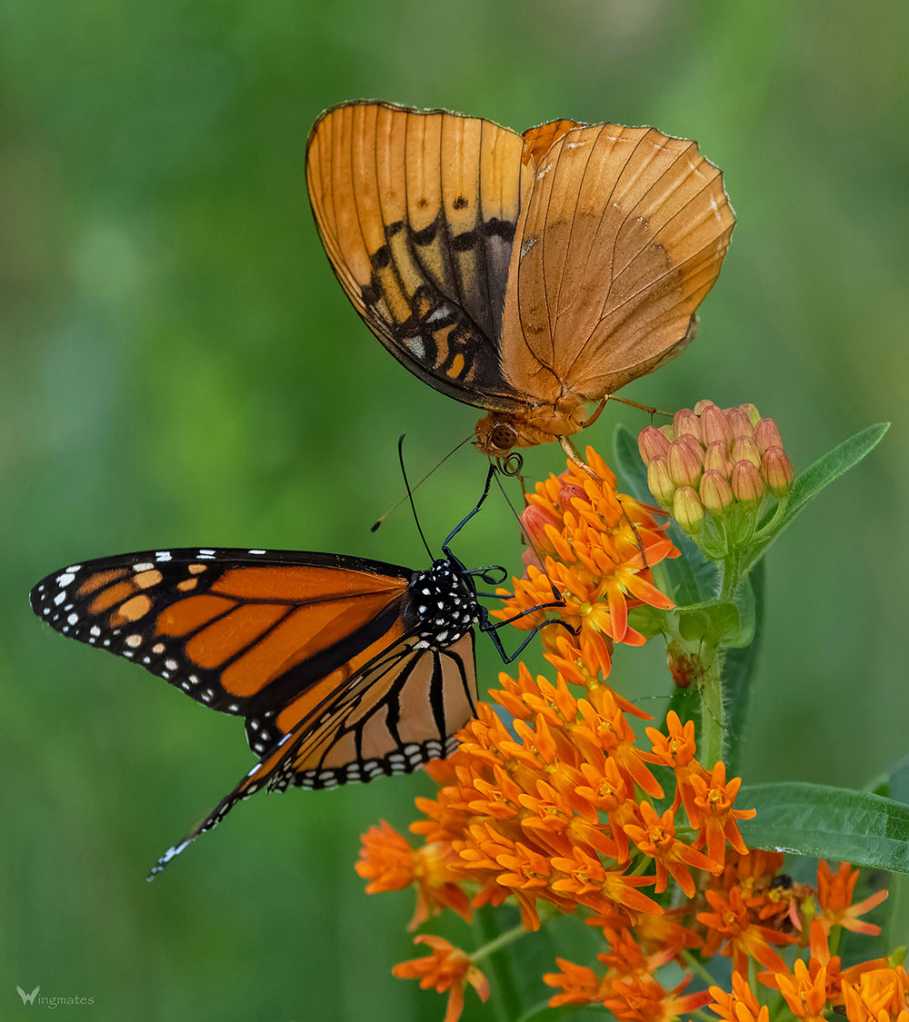 This male Diana was nectaring on the butterfly milkweed when the Monarch flew in.