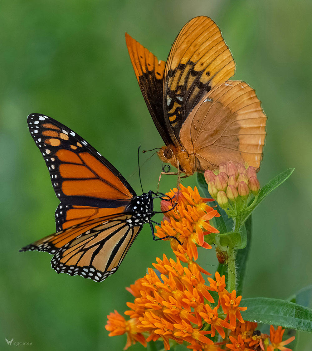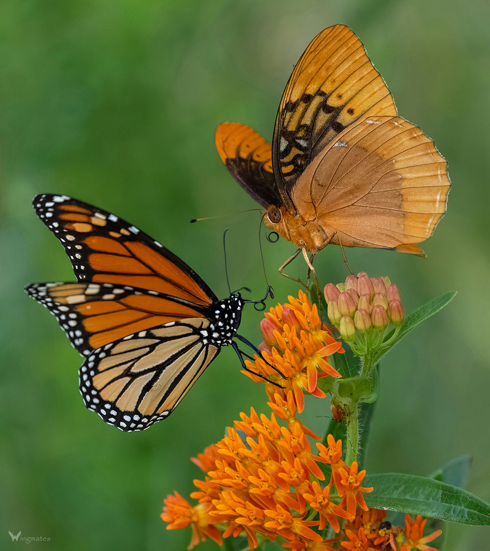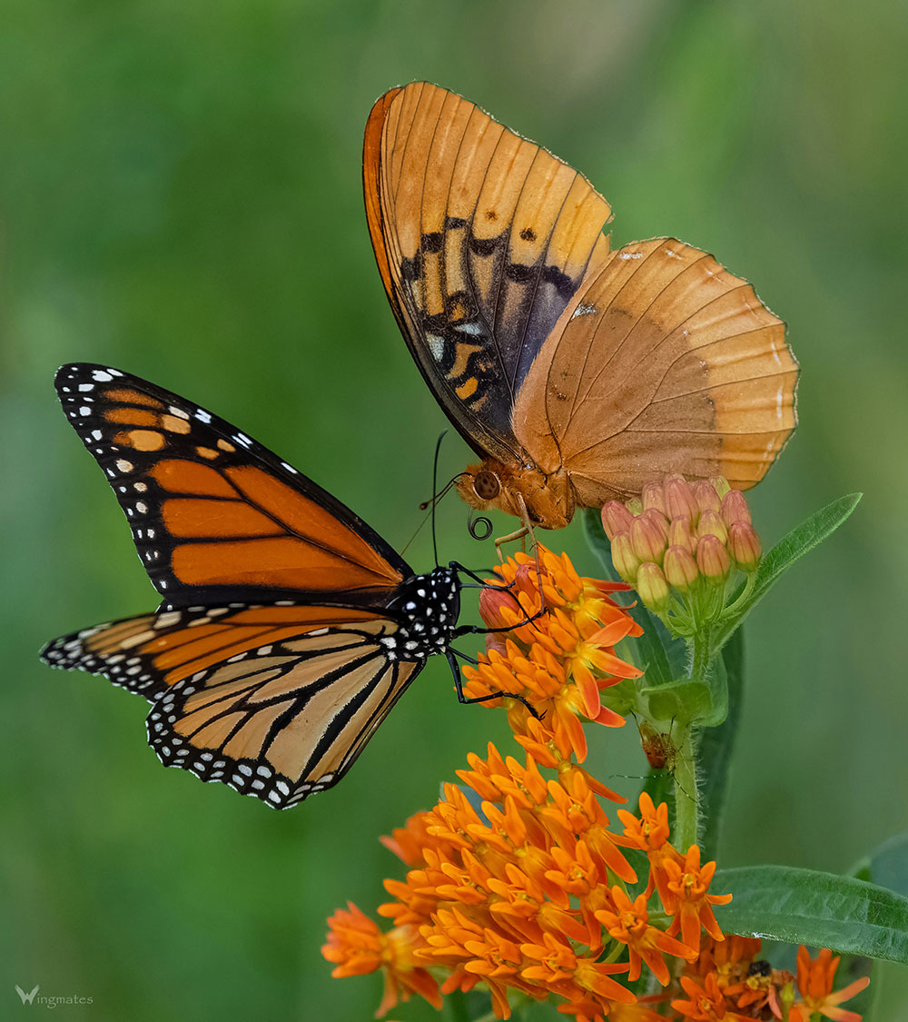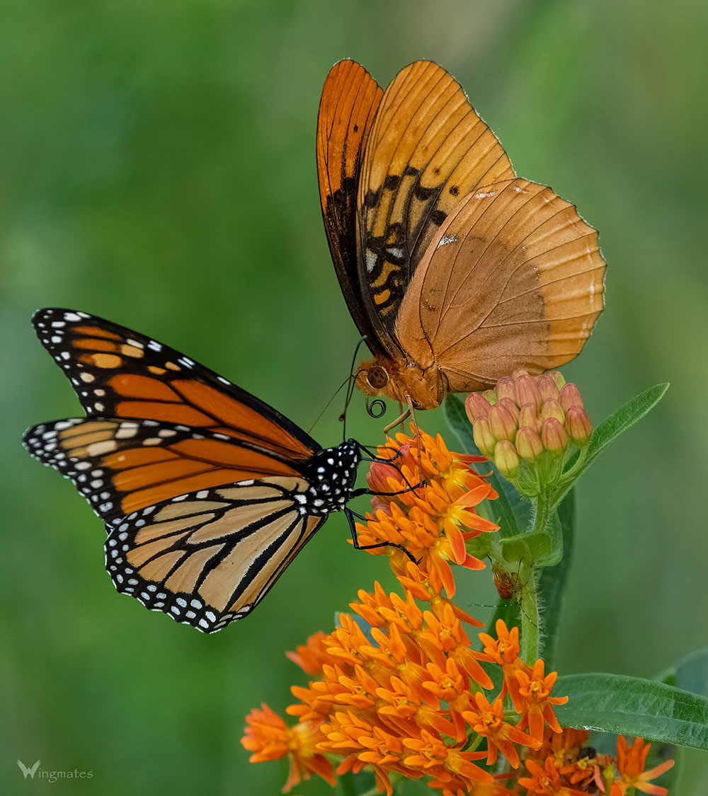 This male Diana was nectaring on the butterfly milkweed when the Monarch flew in.