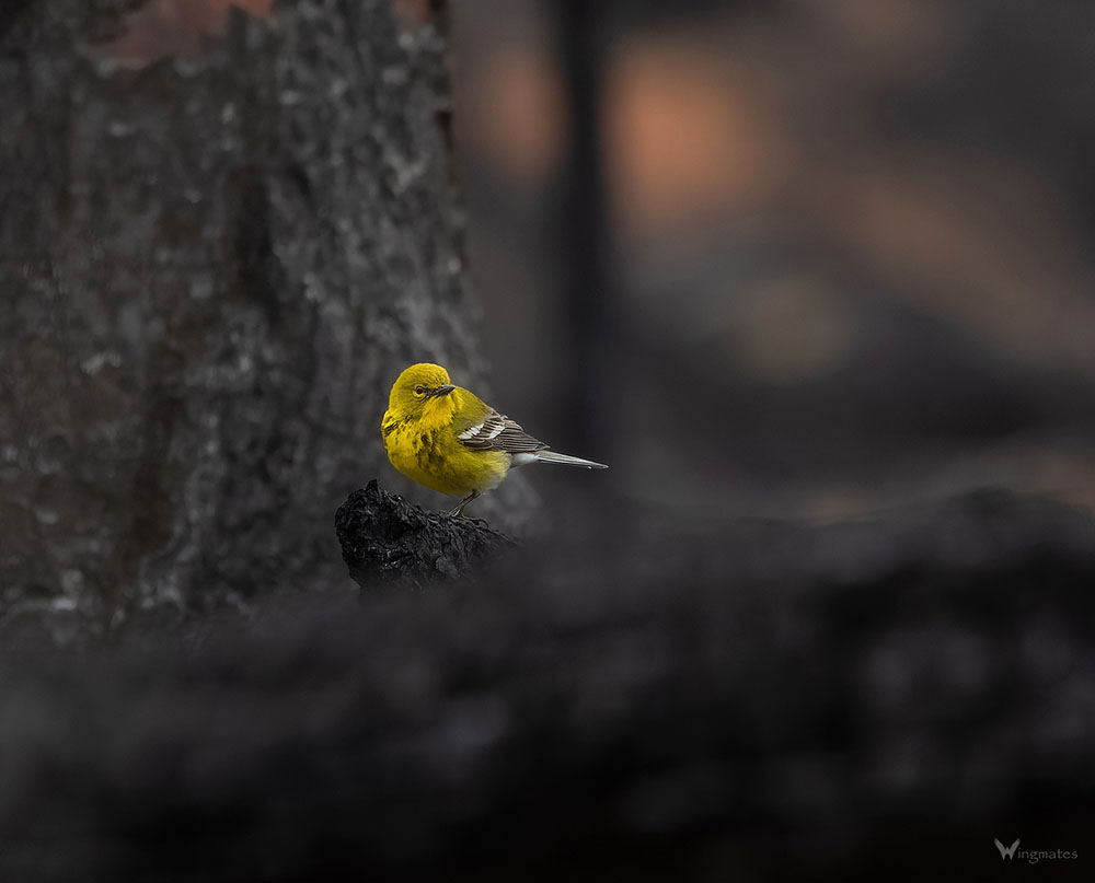 Pine Warbler among the burnt pines