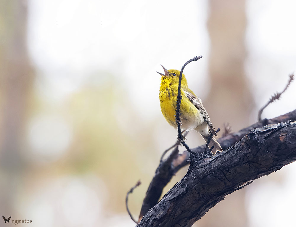 Pine Warbler singing from a burnt branch